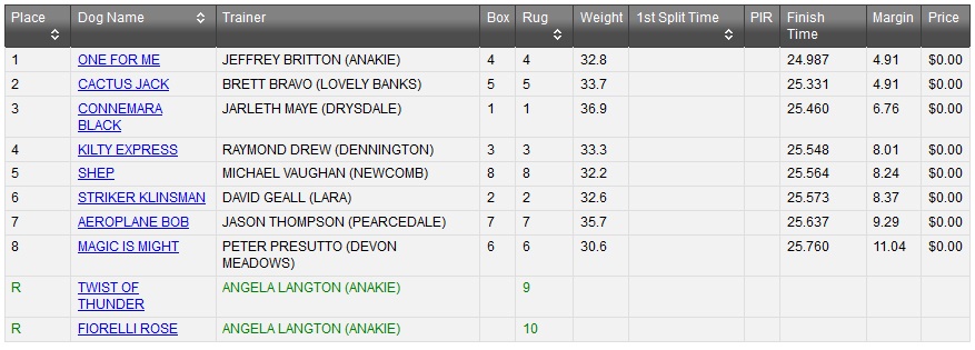The Jeff Britton-trained greyhound delivered a faultless performance in front of a crowd of more than 1,800 people, leading from start to finish and scoring by six lengths in the impressive time of 24.897sec.