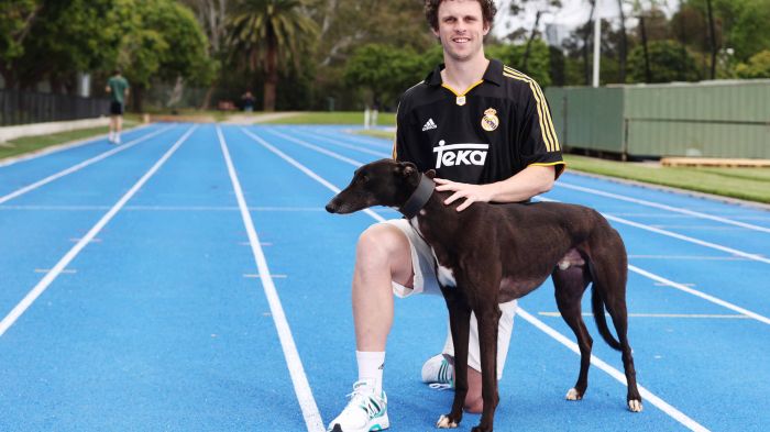Jimmy Newob is the only greyhound on the property not bred by the Fullertons.