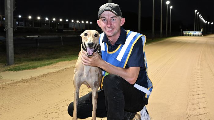 Simone Fisher talks to trainer Robert Britton about his greyhound West On Augie ahead of Saturday night’s Group 1 TAB Topgun at The Meadows.