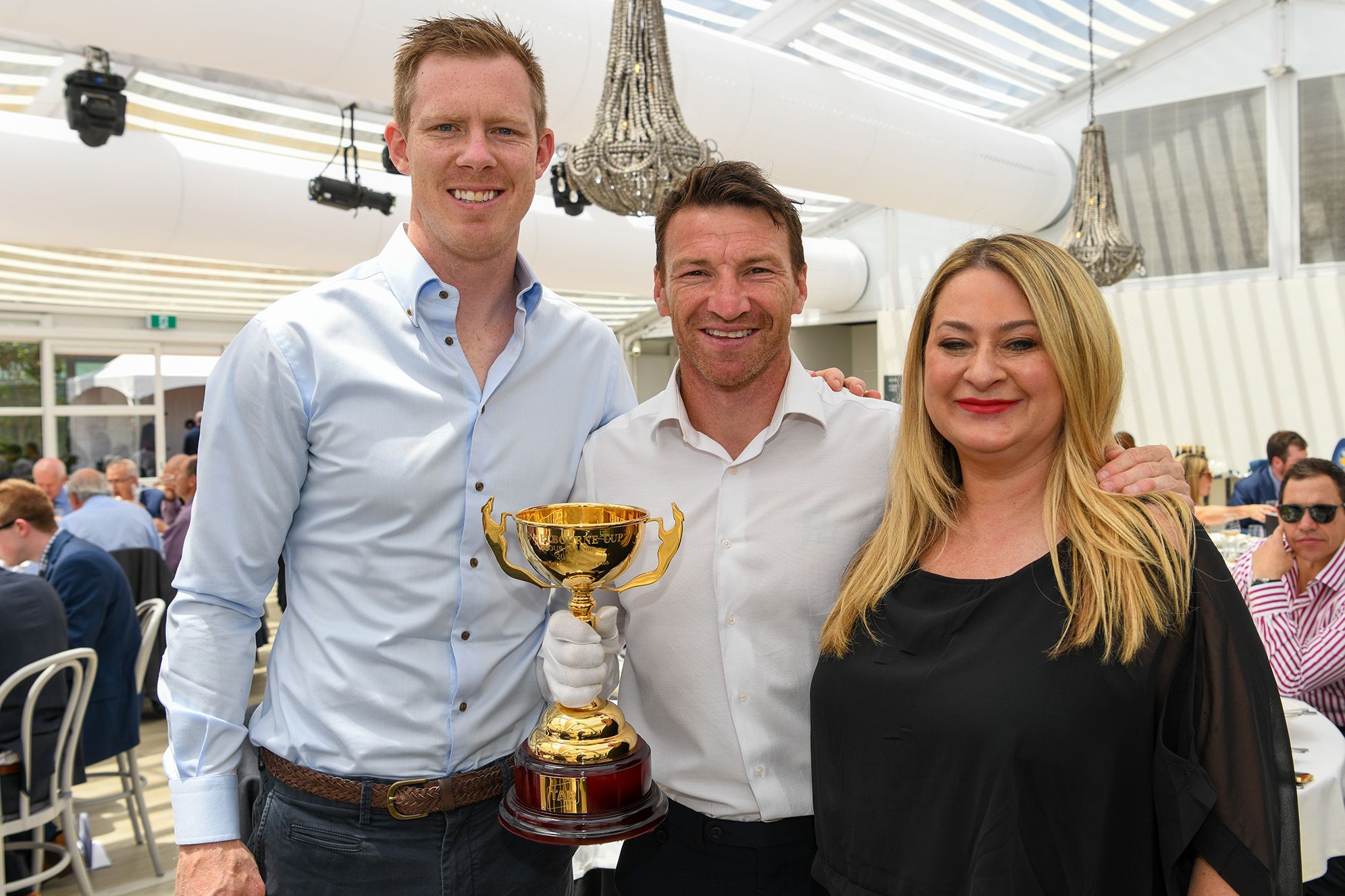 Hooked On Scotch was also lauded on his new track record in the Cup heats, with breeder and part-owner Darren Puleio receiving – appropriately – a bottle of Johnny Walker Blue Label Scotch.