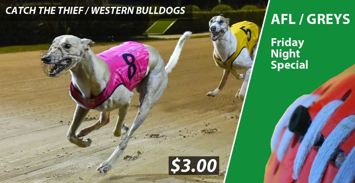 TAB is offering $3.00 for the Western Bulldogs to defeat Melbourne in tonight’s ‘top of the table’ blockbuster and star greyhound Catch The Thief to win at Geelong. Now ‘that’s a steal’!