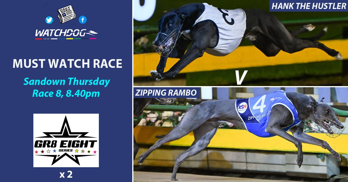 The Watchdog says ?: We see another fantastic line-up for the Gr8 Eight Series, and it should be keenly contested throughout. ZIPPING RAMBO (4) stamped himself as the premier stayer in the land when capturing the Group 1 Sandown Cup Final and he showed his versatility by backing up the following week and winning the Speed Star over 595m. He is racing with extreme confidence at present, and he is expected to take a power of beating tonight, however there is a lot of early speed engaged for a stayer’s event and we know he does not like to be crowded, so the run to the first bend is going to be crucial. HANK THE HUSTLER (1) is a bit of a Sandown specialist, and he appears to be the obvious danger. He has scored some blistering wins over this journey previously, but he has shown that when pressured mid race, he does tend to get tired, so he too will have to do everything right in the initial stages. WHATEVER I SAY (2) is on the up and, with her early speed, she can be a nuisance to the two topliners. With a few more tries over this journey she has the potential to establish herself as a genuine topflight stayer. WEBLEC HAZE (7) rounds out the main winning chances and he represents the value. He is always competitive in races of this nature and with the abundance of early speed engaged, he should be able to drift across into a stalking position mid race and he may be able to pick them off late.