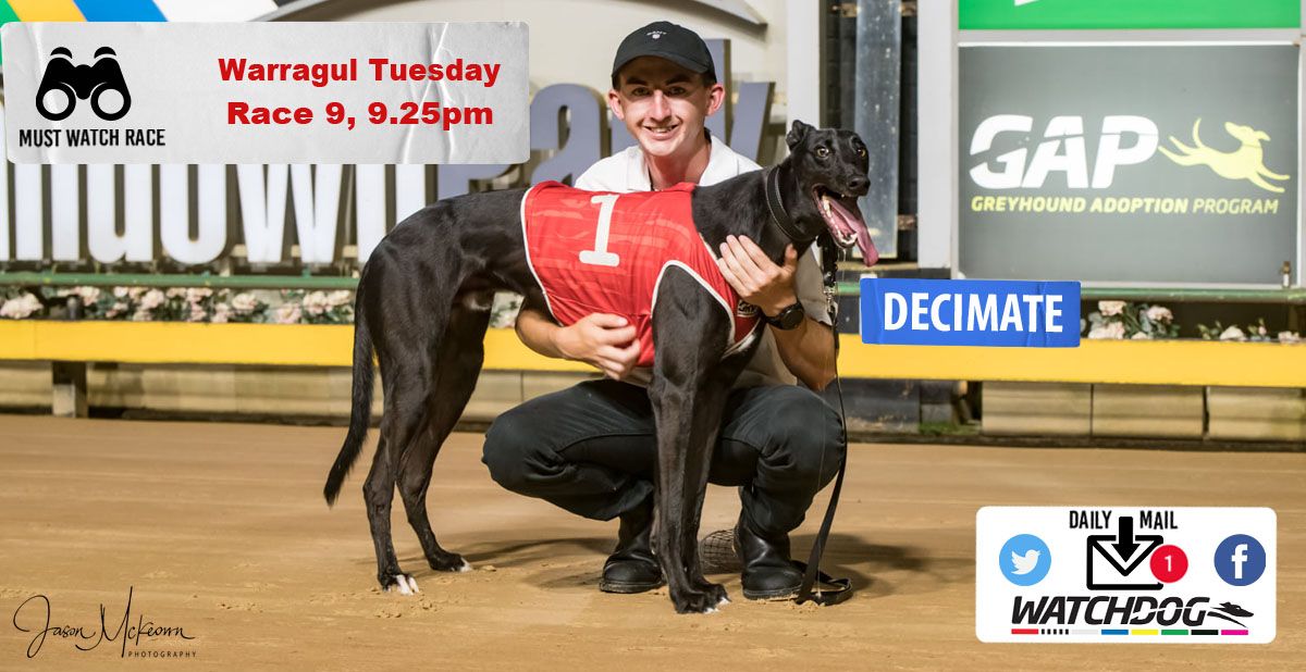Listed Western Districts Derby placegetter Decimate is tipped to bolster his record to 12 wins from 23 starts in a Mixed 4/5 460m race at Warragul tonight, but he does face well-performed chasers headlined by Spring Scout.