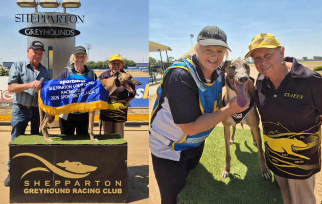 Brooke Ennis finds herself with two greyhounds (Zipping Hopkins and Amron Tiger) in contention for the Horsham Cup, but it was Zipping Hopkins who pulled off the run of the night with a last to first performance to win his heat.