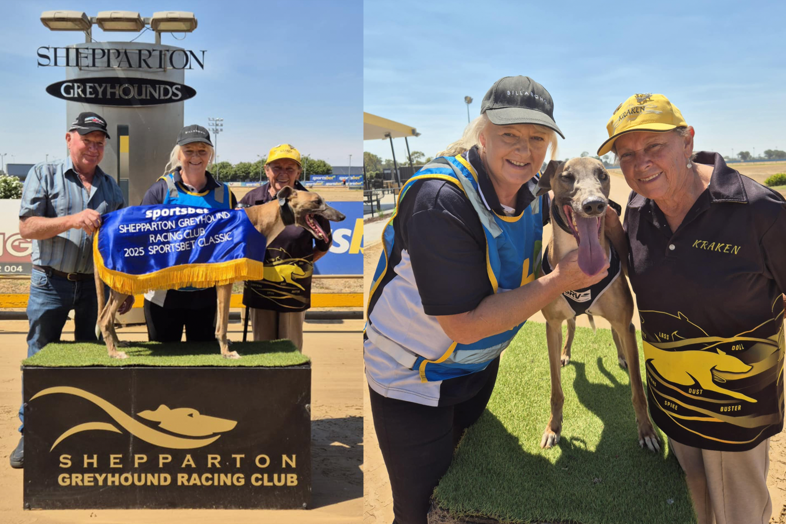 In an all Aston Rupee-sired trifecta, Kraken Whisky staved off the challenge of NSW-trained littermates Slick Badger and Slick Felix to land the $10,000-to-the-winner final in a flying 24.87.