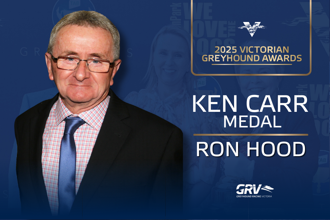 Ron Hood has added another honour to his long list of achievements in greyhound racing, being awarded the 2024/25 Ken Carr Medal in recognition of his excellence and service to the industry.