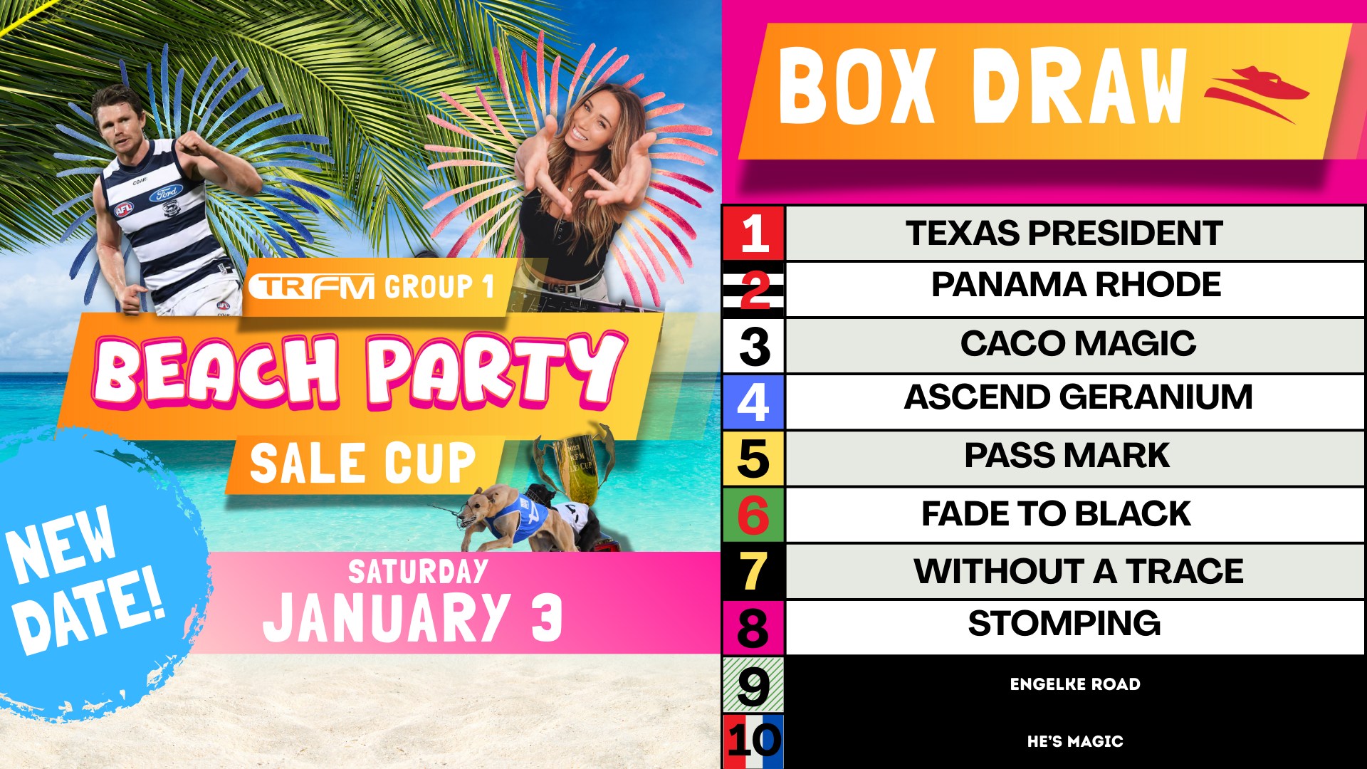 Her rivals include Caco Magic, who backed up his extraordinary Meadows 600-metre track record with a dominant all-the-way heat win in 36.32, only a length and a half behind Without A Trace’s time standard.